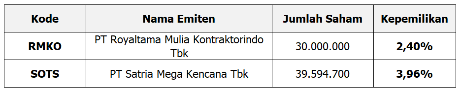 Dari data tersebut, publik kini dapat mengetahui bahwa Andry Hakim memiliki kepemilikan saham di atas 1% di beberapa emiten, termasuk RMKO dan SOTS, yang sebelumnya mungkin tidak sepenuhnya terlihat oleh investor ritel karena porsi kepemilikannya berada di bawah ambang batas pelaporan lama.