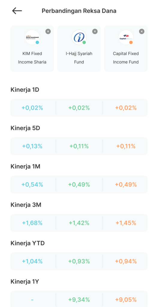 Selain membandingkan dua reksa dana, Anda juga membandingkan return dengan benchmark tertentu. Misalkan, Anda bisa membandingkan imbal hasil dari berbagai reksa dana di jenis yang sama. Di Makmur, Anda dapat menggunakan fitur perbandingan reksa dana untuk mengetahui kinerja, expense ratio, dana kelolaan, hingga minimum pembelian.