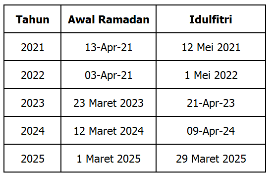 Tabel 1. Periode Ramadan tahun 2021-2025