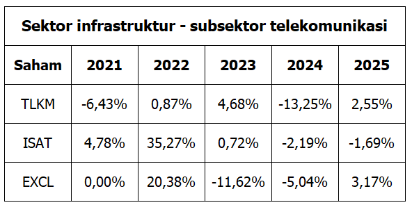 Tabel 3. Kinerja beberapa saham sektor infrastruktur 2021-2025